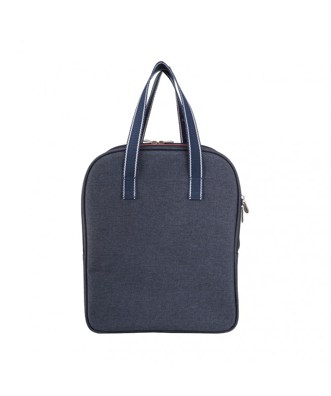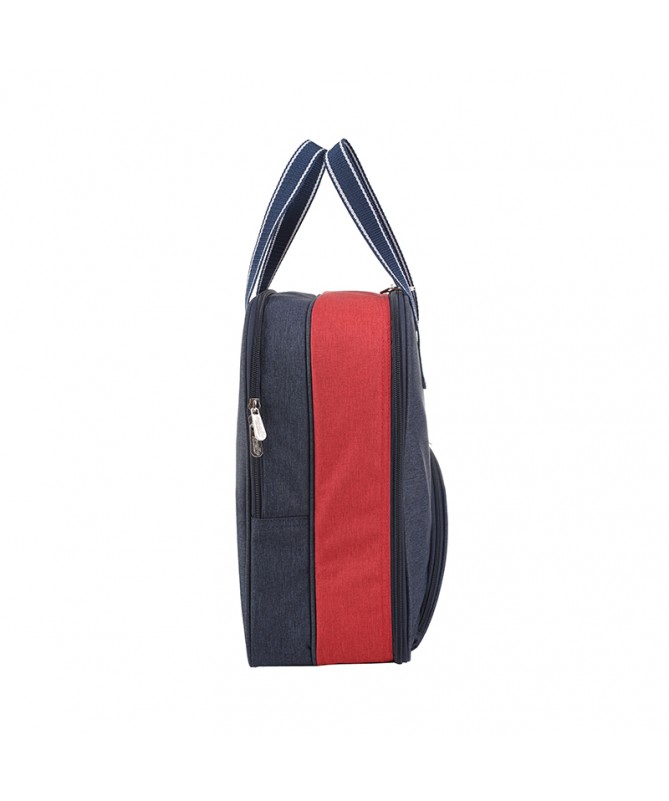 4 Person Picnic Bag with cooler compartment Material: 300D melange polyester + PEVA insulation + 210D polyester lining Contents: 4 x Stainless steel knives/forks/spoons with PP handle 4 x 9" PS dinner plates 4 x Cotton napkins 4 x PS wine glasses 2 x Salt & pepper shakers 1 x PE cutting board 1 x Cheese knife with PP handle 1 x Bottle opener with PP handle |
