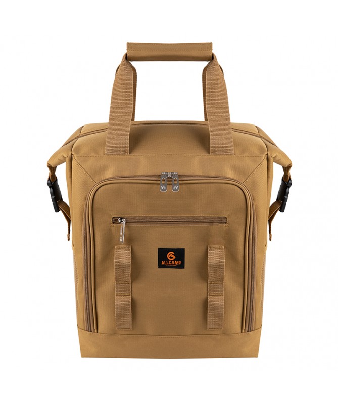 Cooler bag with carry handles, front zip pockets and net side pockets