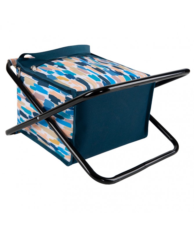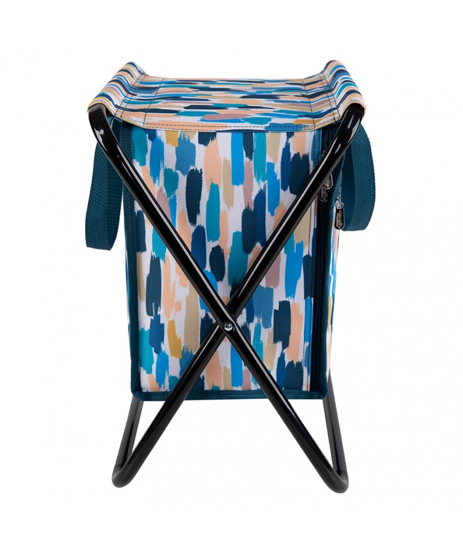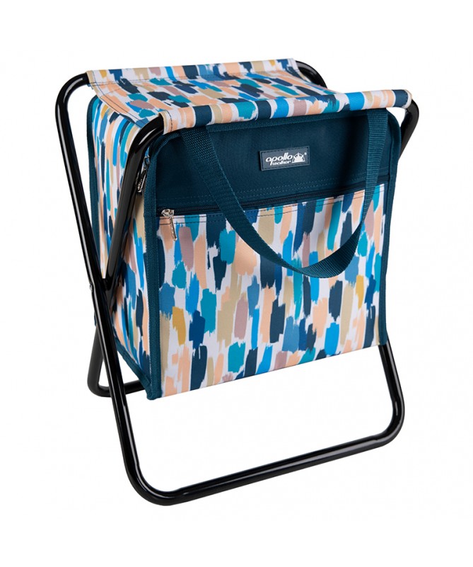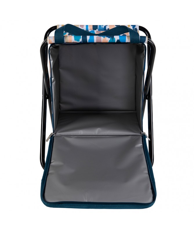 Cooler Stool bag with steel frame and cooler compartment, front zip pocket and carrying handles